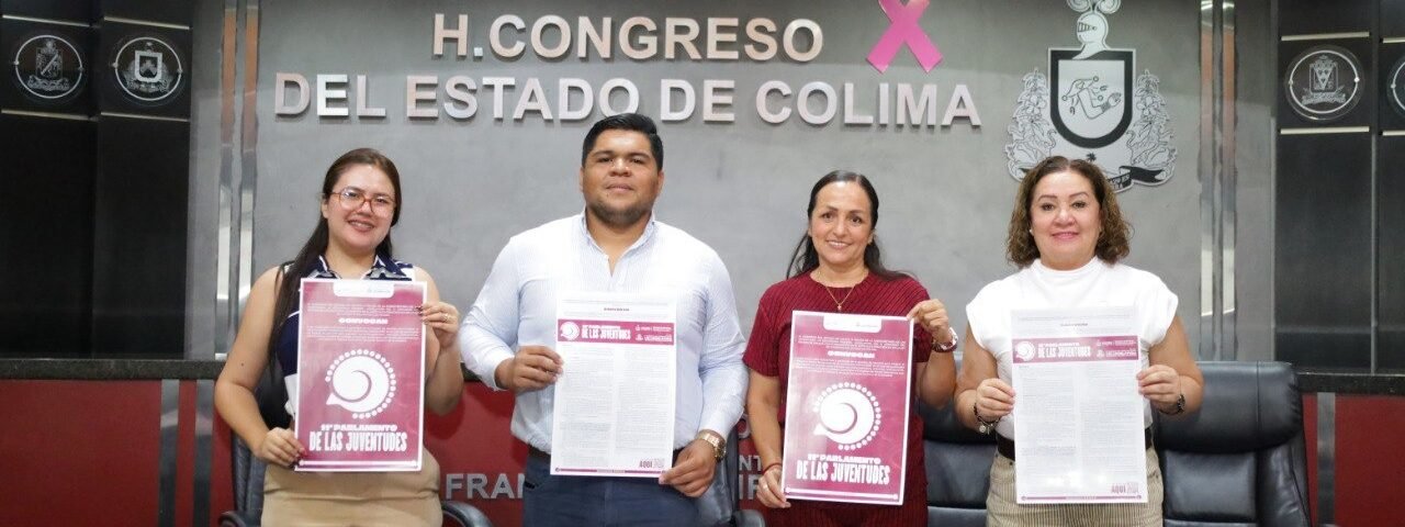 En rueda de prensa, la diputada Glenda Yazmín Ochoa, presidenta de la Comisión de Bienestar, Inclusión Social y Equidad de Género, las diputadas Karen Jurado Escamilla, Martha Farías Ríos y Florentino Ramos Avalos, Encargado del departamento de Bienestar Juvenil de la subsecretaría de la Juventud del Gobierno del Estado, anunciaron la convocatoria para participar en el proceso de elección, y formar parte del “Décimo Primer Parlamento de las Juventudes, Colima 2025”.