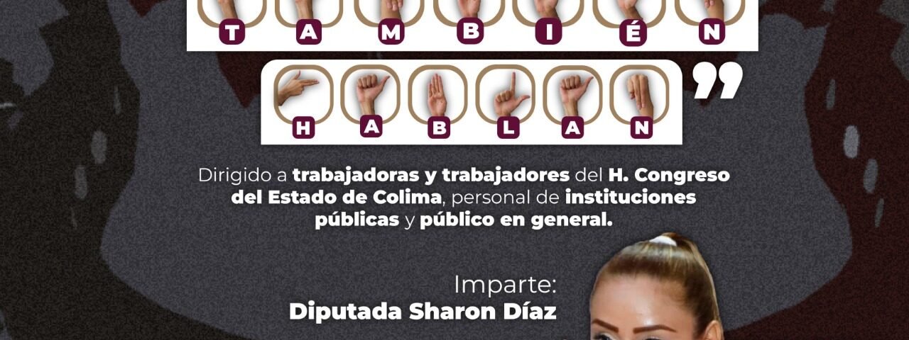 La diputada local Sharon Díaz García, impartirá un curso gratuito de Lengua de Señas Mexicana “Mis manos también hablan”, dirigido a trabajadoras y trabajadores del H. Congreso del Estado, así como personal de instituciones públicas de los tres niveles de Gobierno y público en general.