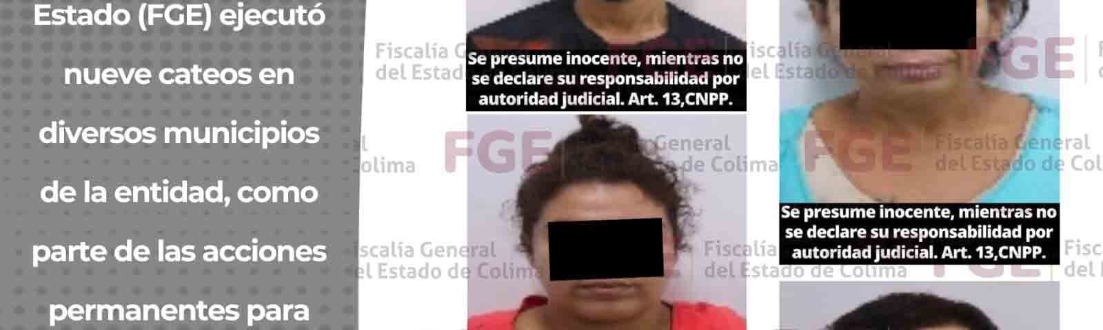 La Fiscalía General del Estado (FGE) ejecutó nueve cateos en diversos municipios de la entidad, como parte de las acciones permanentes para combatir la delincuencia y fortalecer la seguridad de la población colimense.