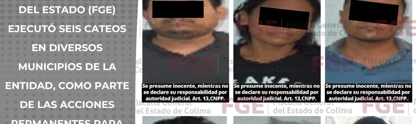 La Fiscalía General del Estado (FGE) ejecutó seis cateos en diversos municipios de la entidad, como parte de las acciones permanentes para combatir la delincuencia y fortalecer la seguridad de la población colimense.