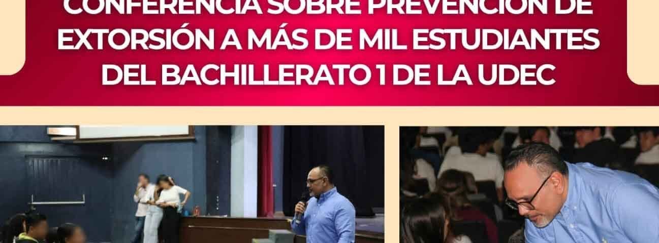 Ante más de 1,200 estudiantes del Bachillerato No. 1 de la Universidad de Colima, el Fiscal General del Estado, Bryant Alejandro García Ramírez, impartió este día la conferencia “Extorsión: cómo identificarla, prevenirla y denunciarla”, con el objetivo de fortalecer la cultura de la prevención entre la comunidad estudiantil.