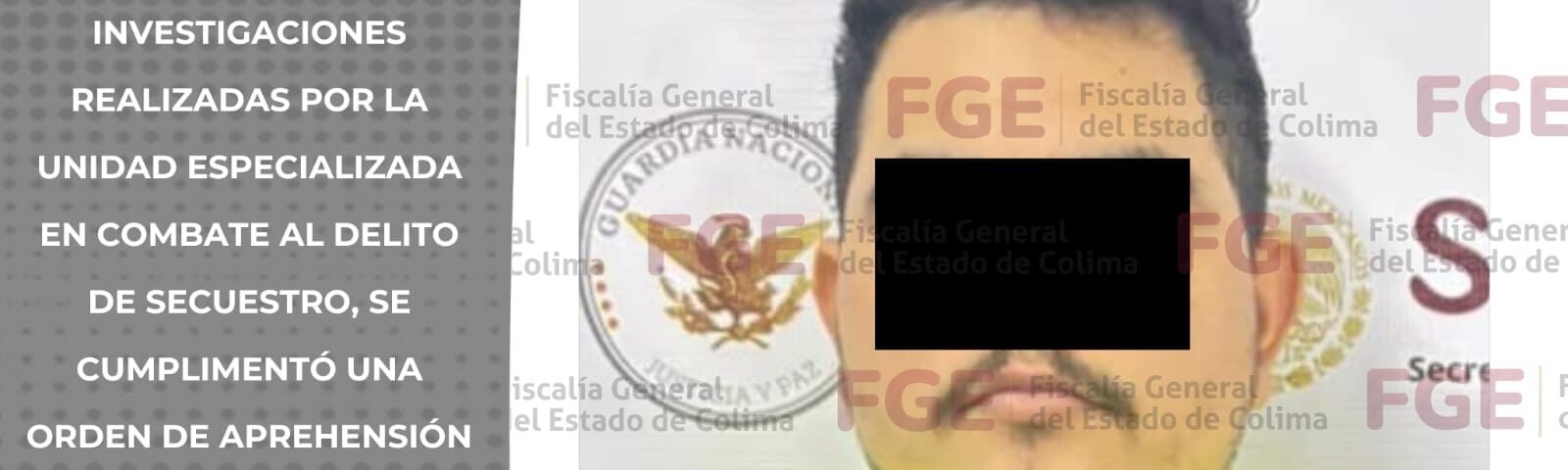 La Fiscalía General del Estado informa que, derivado de las investigaciones realizadas por la Unidad Especializada en Combate al Delito de Secuestro, se cumplimentó una orden de aprehensión en contra de Pablo Francisco “N”, como probable responsable del delito de secuestro agravado, en perjuicio de un hombre.