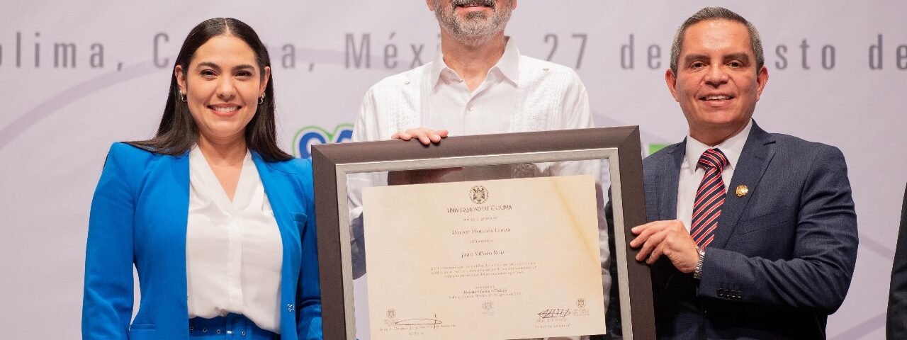 La gobernadora Indira Vizcaíno Silva acudió este miércoles como invitada de honor por la Universidad de Colima a la entrega del Doctorado Honoris Causa al escritor Juan Villoro Ruiz, ceremonia efectuada en el Teatro Universitario ‘Coronel Pedro Torres Ortiz’; ahí, en presencia del rector Christian Jorge Torres Ortiz Zermeño, la mandataria estatal indicó que en términos políticos se tienen muchas coincidencias con el literato.