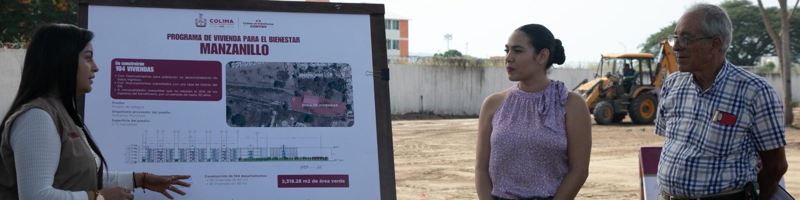 Al continuar con su agenda de trabajo este miércoles por Manzanillo, la gobernadora de Colima, Indira Vizcaíno Silva, supervisó el inicio de la construcción de 104 casas dentro del Programa Vivienda para el Bienestar que impulsa la presidenta de México, Claudia Sheinbaum Pardo. La construcción de estos inmuebles se realiza en la colonia Prados de Salagua, en un predio donado por el gobierno municipal.