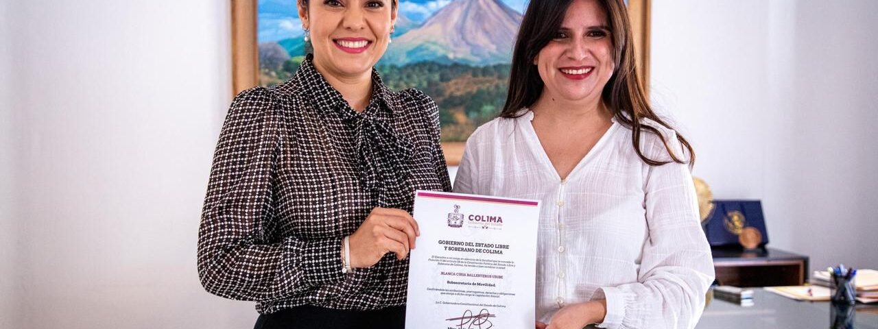 La gobernadora Indira Vizcaíno Silva designó este viernes a Blanca Ciria Ballesteros Uribe como subsecretaría de Movilidad del Gobierno del Estado de Colima; la nueva titular de la Subsemov cuenta con especialización en diseño e implementación de Políticas Públicas, particularmente en transporte público con perspectiva de género.