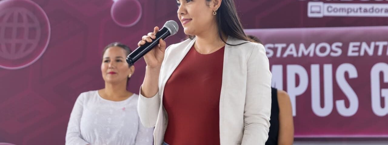 La alumna Cristal Valdovinos agradeció, en nombre de las y los beneficiarios, la entrega de las computadoras y dijo que la mandataria estatal junto con la presidenta de México, Claudia Sheinbaum Pardo, se preocupan por las y los estudiantes; “principalmente, yo sé que usted lo hace para facilitarnos el trabajo y como un medio para investigar”.