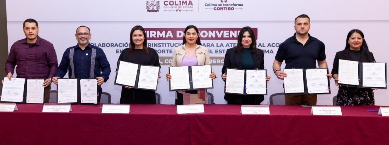 La gobernadora Indira Vizcaíno Silva firmó este martes un convenio de colaboración para atender el acoso sexual en el transporte público, donde participan Fiscalía General del Estado (FGE) y el Gobierno del Estado de Colima a través de sus secretarías de Seguridad Pública y de Infraestructura, Desarrollo Urbano y Movilidad, Subsecretaría de Movilidad, Instituto Colimense de las Mujeres y el Centro de Coordinación, Comando, Control, Comunicaciones, Cómputo e Inteligencia (C5i), entre otras instituciones.