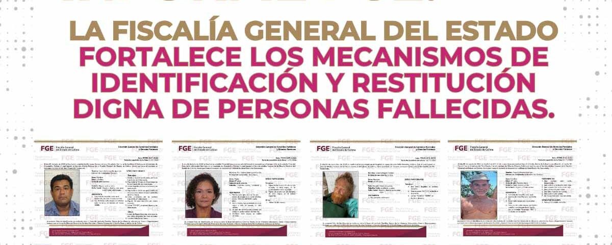 Como parte de los procesos de identificación forense de personas fallecidas y de la coordinación institucional para su destino final, la Fiscalía General del Estado de Colima ha diseñado un espacio de difusión que facilita la localización de familiares y la entrega digna de personas fallecidas no reclamadas. Este esfuerzo aprovecha el alcance que ofrecen la tecnología y las redes de comunicación actuales.