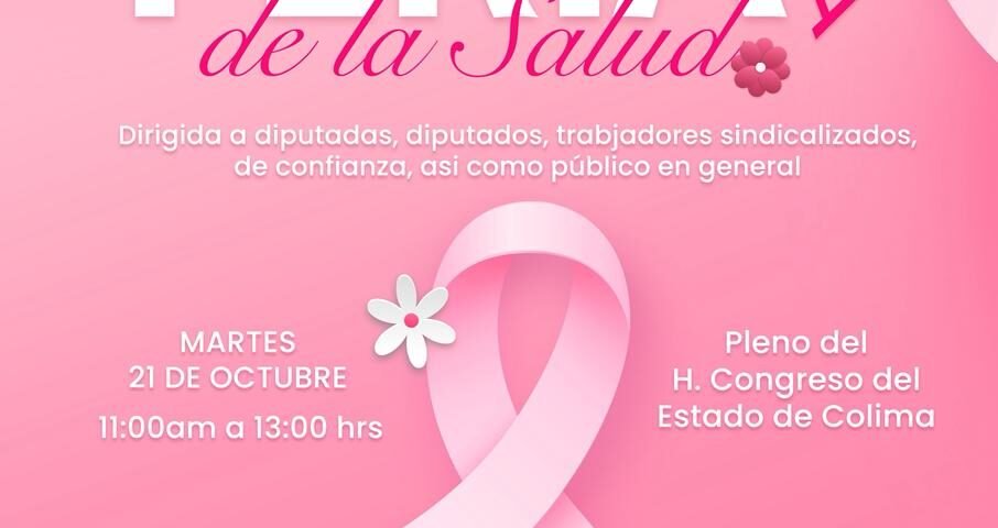 En el marco del Mes de Sensibilización Sobre el Cáncer de Mama, este martes 21 de octubre, en el H. Congreso del Estado de Colima, se llevará a cabo la “Feria Rosa de la Salud”, con la cual se busca visibilizar, sensibilizar, promover y crear conciencia sobre la detección, diagnóstico y tratamiento oportuno del cáncer de mama.